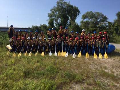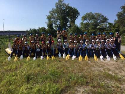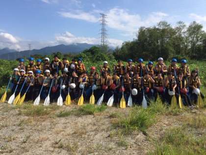 ラフティング出発地点に到着し、クラス写真を撮りました。
