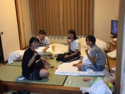 部屋で荷物整理やトランプなどをしています。