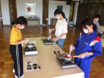 イチゴをことこと1時間程時間をかけて煮込んでいます。
