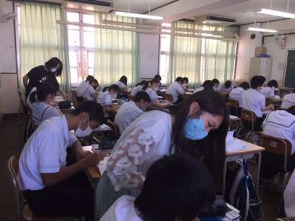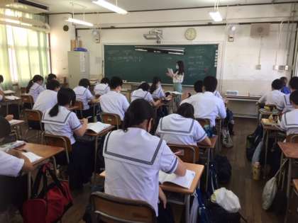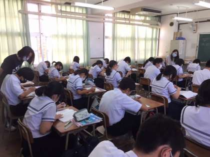 教室の中に2名の英語の先生が授業に入り、教室内習熟度別授業を展開しています。