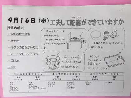 ・配膳するときは、見本を見て1人分の目安を知ろう。