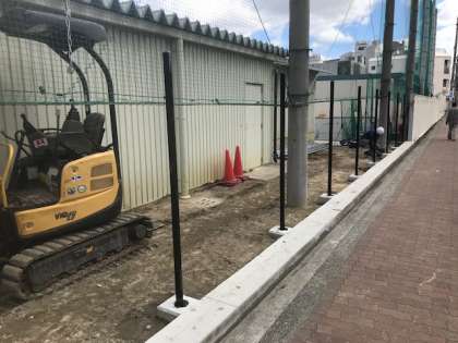 しばらく仮設の塀でおおわれていましたが、格子柵の設置が終了しました。