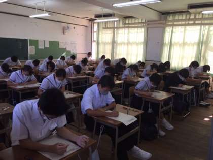 3年生はについては3限終了後下校しますが、午後2時30分より英検があるので、英検を受験する生徒については再度登校になります。