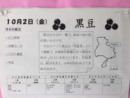 今日のソフト黒豆は「丹波黒」という種類で、兵庫県丹波篠山市で栽培が始まったといわれています。丹波黒は、粒が大きく、かめばかむほどうま味が出ます。
