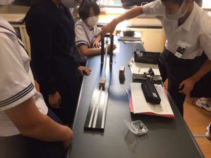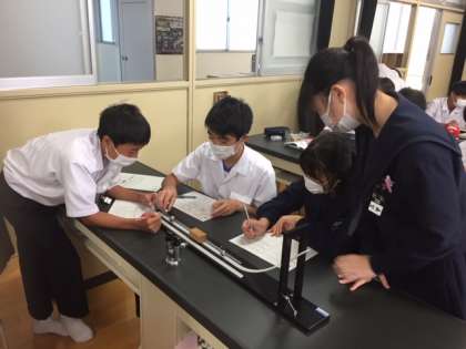 エネルギーの大きさと、物体の高さや質量の関係を調べています。