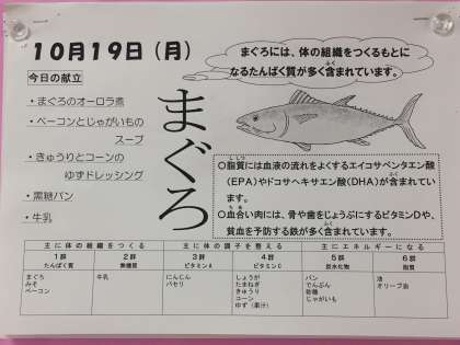 まぐろには、体の組織をつくるもとになるたんぱく質が多く含まれています。