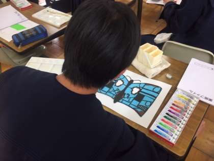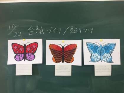 写真上段は、すでに出来上がった他クラスの生徒の作品です。