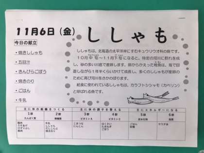 給食に使われているししゃもは、カラフトシシャモ(カペリン)と呼ばれる魚です。