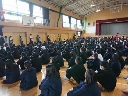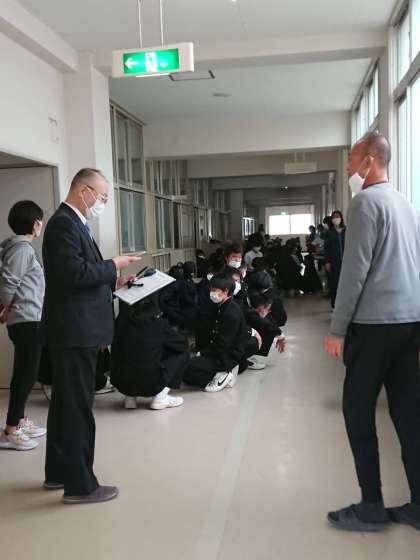 体育館に集合後、大津波警報が発令した想定で、3階以上の廊下に避難しました。