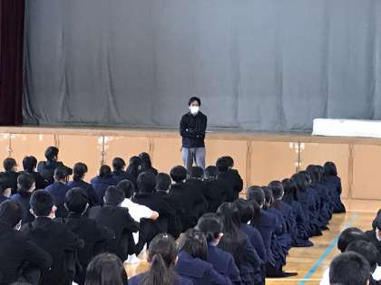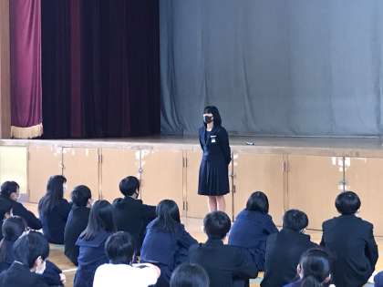続いて、学級代表からはテストに向けての学習の話があり、最後に学年主任の有賀先生から、進路に向けてのお話がありました。