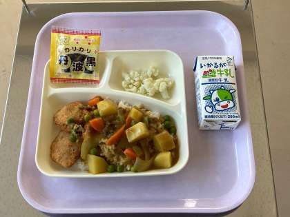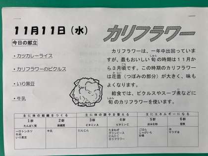 給食では、ピクルスやスープ煮などに旬のカリフラワーを使います。