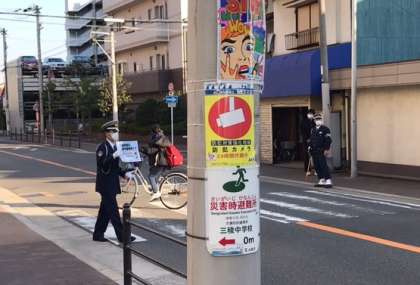 交通係の皆さんに、横断歩道の歩行者の安全の呼びかけをしていただきました。