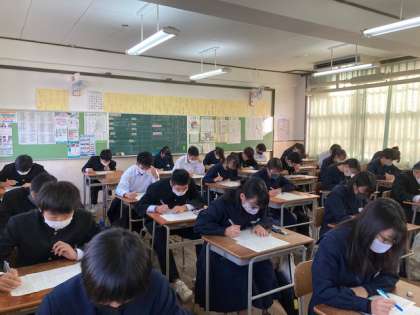 本日3年生は「第3回実力テスト」に臨んでいます。