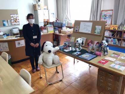 大阪市立中央図書館から学校図書館補助員の後木さんにお越しいただき、図書館運営について内外の整美や装飾なども行っていただいています。