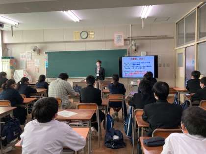 本日5限2年生は、起業家ミユージアムから講師の方に来ていただき、職業講話を実施しています。