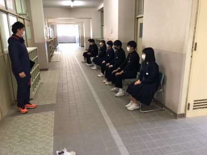 本日から3年生の校長面接が始まりました。1限は多目的室において1組の面接を実施しました。