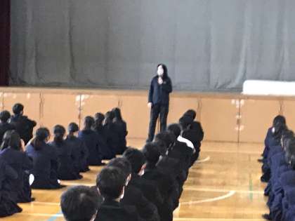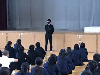 学級代表からは「入試に向けて頑張りましょう」と連絡があり、学年主任の有賀先生からは「放課後の過ごし方」についてのお話がありました。