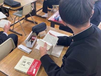 まず自分で文字を決め、トレーシングペーパーに写し文字を削っていきます。