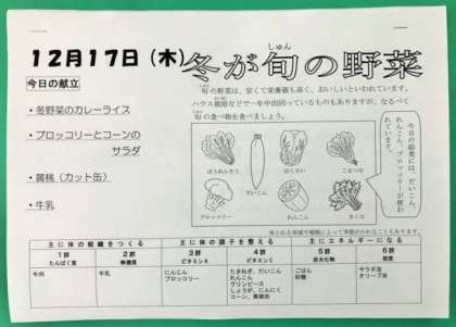 今日の給食には、だいこん、れんこん、ブロッコリーが使われています。