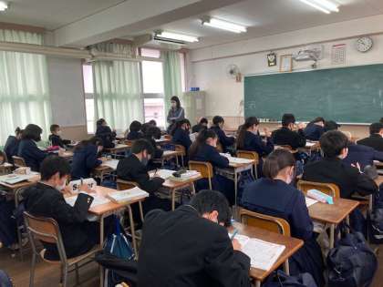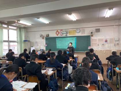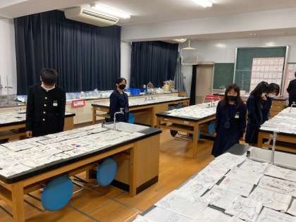 家庭科の時間は、授業の合間に文化祭の作品を交代で鑑賞しています。