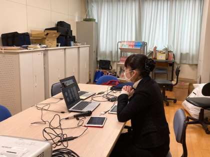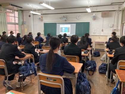 新型コロナウイルス感染症拡大防止対策として、学年別にオンラインを活用し教室で講話を聴きました