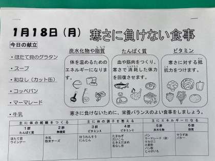 寒さに負けないために、栄養バランスのよい食事をしましょう。