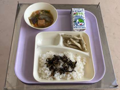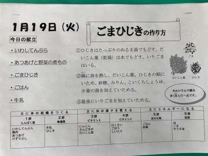 1.ひじきはたっぷりのぬるま湯でもどす。だいこん葉(乾燥)は水でもどす。いりごまはいる。