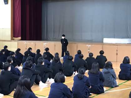続いて平井先生より受験に向けての心構えなどについてお話があり、最後に学級代表から、最後の学年末テストに向けてみんなで頑張りましょうと連絡がありました。