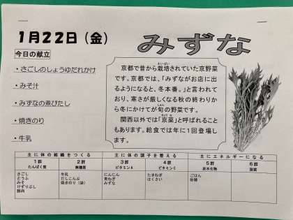 関西以外では「京菜」と呼ばれることもあります。給食では年に1回登場します。