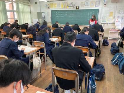 写真は1限、数学のテストの様子です。