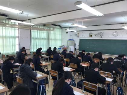 3年生は昨日に引き続き、学年末テスト2日目です。