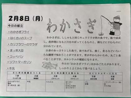 今日の「わかさぎフライ」はかみごたえがあります。しっかりとよくかんで食べましょう。