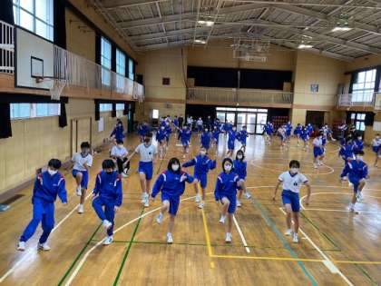 オリジナルのダンスを入れて、曲に合わせて通し練習をしています。
