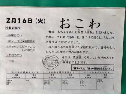 今日は、焼き豚、くり、しいたけの入った『中華おこわ』です。