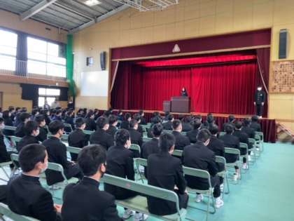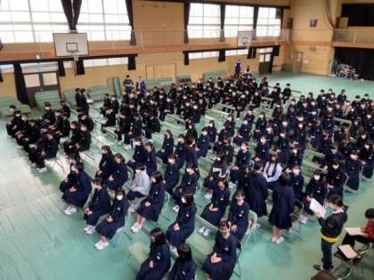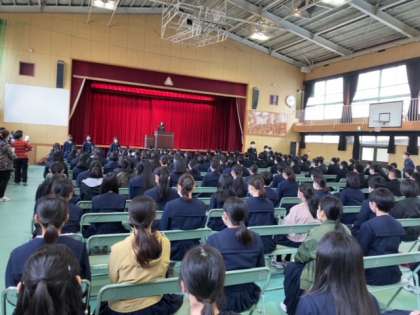 感染防止対策のため今年度も一人ひとりの授与ができないので、保護者席を向いて返事をする形を取りました。卒業証書は各クラスの代表生徒に授与する形になります。