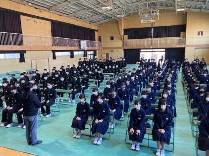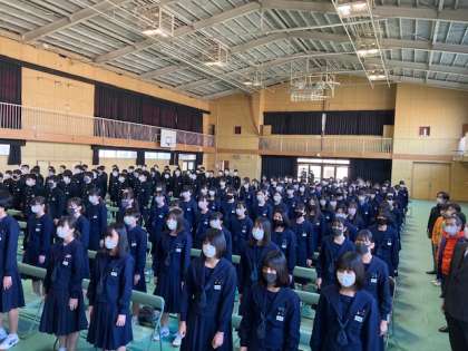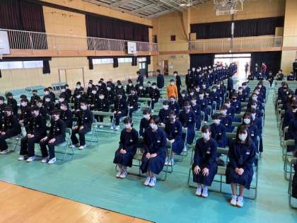 写真下段は、国歌・市歌・校歌斉唱の様子です。