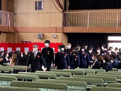 いよいよ卒業生が入場し、教頭先生の「開式のことば」で『第73回卒業証書授与式』か挙行されます。