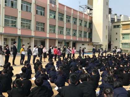 新年度を迎え、全校生徒がそろって着任式、始業式、対面式を行いました。