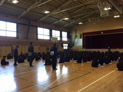 1年生は、校舎見学や体育館で中学校生活についての話を聞きました。2・3年生は、1時限目から授業が始まっています。タブレットパソコンの確認も行いました。