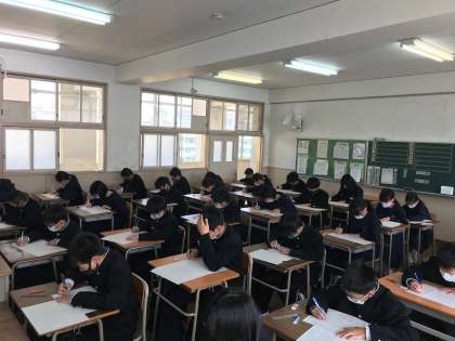 3・4限目に国語・算数の学力診断テストを行いました。中学校に入って初めてのテストです。全員、真剣に取り組んでいました。