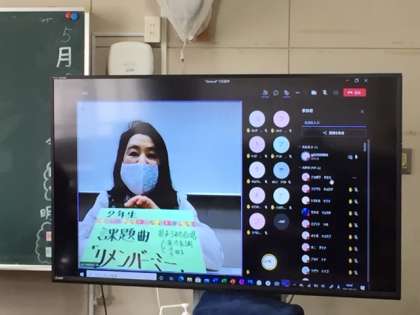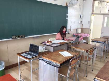 10時35分から11時10分が住吉区内の中学校の割り当て時間になっています。時間は短いですが、オンライン授業に集中して取り組んでいます。
