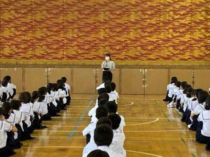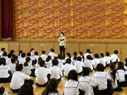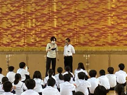 毎週金曜日、1年生は学年集会です。今日は遅刻もなく、全員揃って開始することができました。