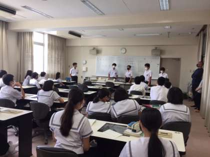 班ごとに記者会見する人、記者として質問する人に分かれて英語でやりとりをしました。英語に親しむとともに実際に使うことに慣れ、英語力の向上をめざしましょう。