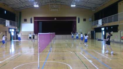 小雨降る天気になりました。生徒たちは、体育館や横の技術室前、廊下などで元気に活動しています。