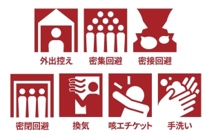 「三密を避ける」「マスクの着用」「手洗いの徹底」「分散」「不要な会話を控える」など、それぞれが自覚を持った行動が必要です。