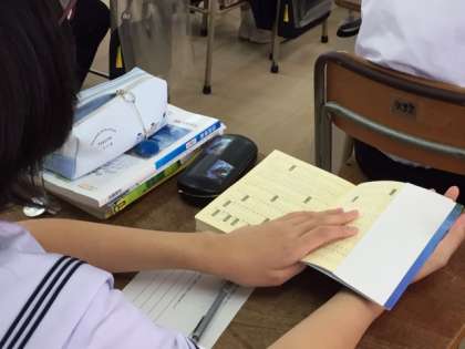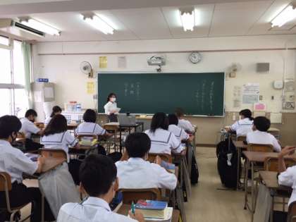 1年生の国語の授業です。漢字の部首と成り立ちについて学習しました。漢字が象形・指事・会意・形成などの種類があることを理解しました。