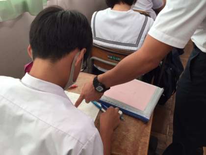 2年生の数字の授業です。一次関数について学習をしています。今日は、2元1次方程式のグラフをかくことを目標に問題練習も行い、理解を深めました。
