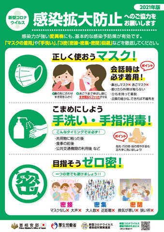 ○上記感染防御対策は、現在の感染の拡大の中心となっているデルタ株に対しても有効であるとされていますので、皆様で取り組みいただき、家庭内感染を防ぐように心がけてください。