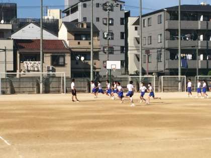 運動会も近づいて来ました。タイムを計測中。走っています。