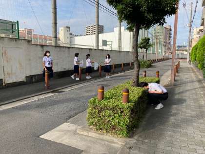 緊急事態宣言解除後、特に目立っているのは酒類の、特にビールの空き缶や一升瓶が植え込みの中に捨てられていることです。植え込みの奥深くに捨ててあり、飲み残しのものも多く、中身を捨てるにも一苦労です。毎回のように残念な気持ちになります。後期生徒会執行部にこの取り組みを継続し、何とか今よりも改善されるような方策を期待したいと思います。